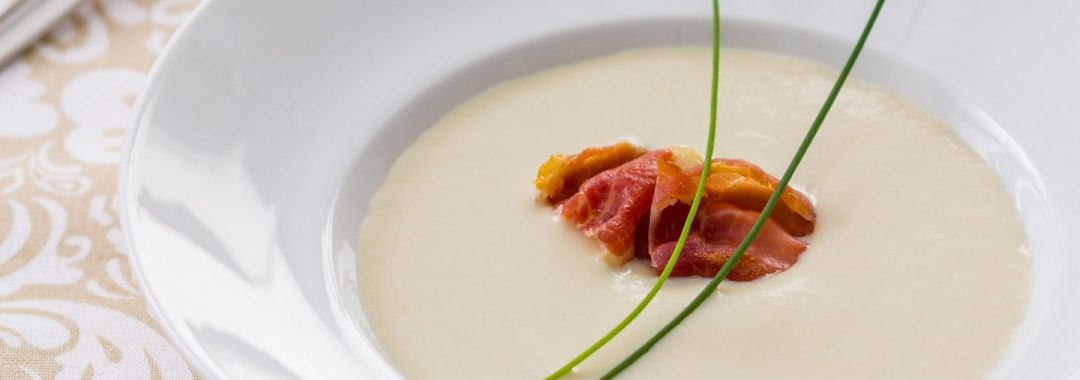 Serve the cream with the toasted bread, some slices of ham and chives chopped on top.